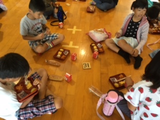 雨が降っているのでプレイホールで食べました。
