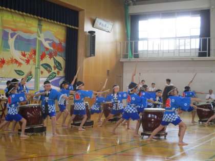 夏祭りが始まろうとしていた5時ごろ,急に雨が降り出し,開会イベントは急遽体育館で行われることに。