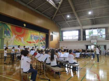 オープニングを飾る和太鼓部の力強い演奏に続き,金管バンドの軽快な演奏で夏祭りが華やかにスタートしました。