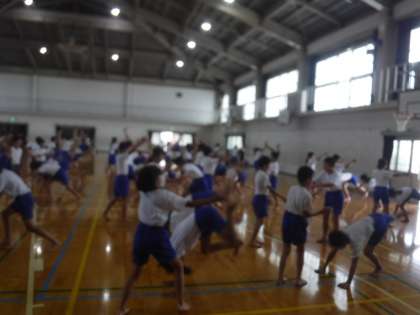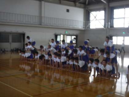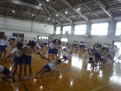 1人・2人技はたくさんの人ができるようになっています。今度は,グループ技の練習です。人が増え,技が大きくなってくると,我慢する時間も長くなります。お互いを支える意識をもって,けがをしないように気をつけながら練習していきましょう。
