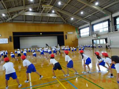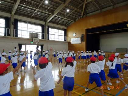 運動会の練習を頑張っています。玉入れの時のダンスの練習です。