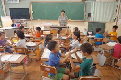 音楽スクールサポーターと,楽しく音楽の学習をしています。