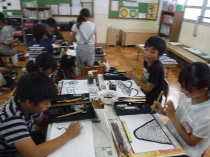 図画工作の時間に,墨絵に挑戦しました。墨の濃淡を生かしたり,表現を工夫したりして,それぞれが楽しく作品を仕上げていました。