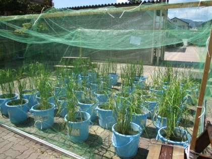 バケツ稲もネットを張りました。