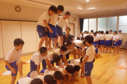 6年生の組体操,いよいよ大技の練習に入りました。