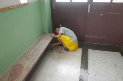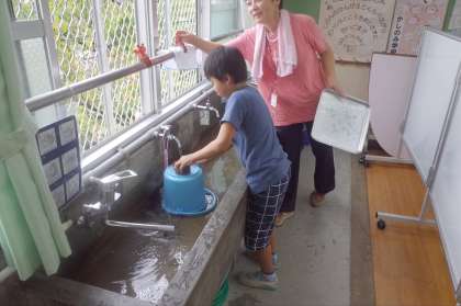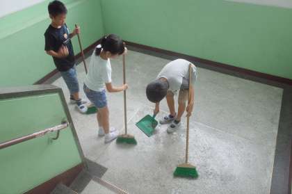 廊下の隅や,バケツの裏までピカピカにしている子がいます。