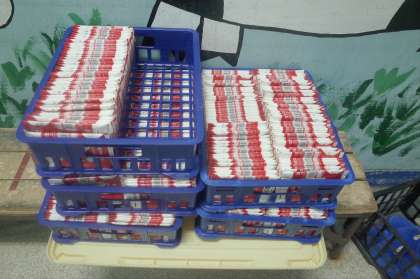 全校児童792人の牛乳パックが,こんなにコンパクトに!