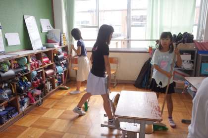 黙って,一生懸命掃除をしていました。