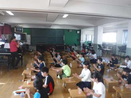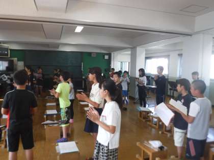 夏休み前から,少しずつ進めていましたが,学習発表会に向けて本格的に練習を始めました。手拍子やカップスなど,リズムよくできるように練習しています。上達めざして,みんなで頑張りましょう。