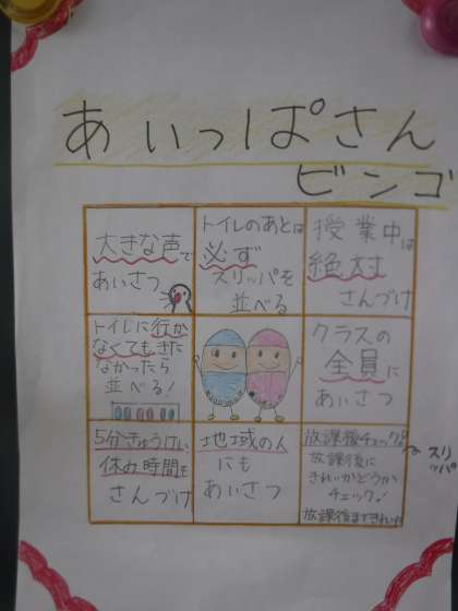 あいっぱさんキャンペーンの取組で,代表委員が「あいっぱさんビンゴ」を作ってくれました。あいっぱさんの意識付けになればいいなあと思います。