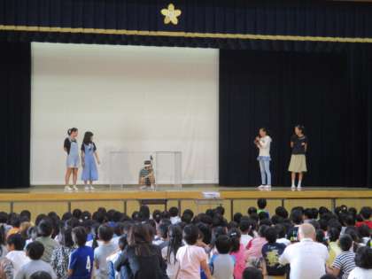 飼育小屋のうさぎについて,気を付けてほしいことを,寸劇で楽しくわかりやすく伝えました。