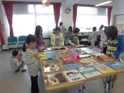 選書会ではたくさんの新しい本の中から図書室に置いてほしい本を選びます。