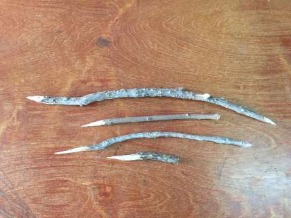木の枝を小刀でけずって,世界に一つしかないペンを作ります。