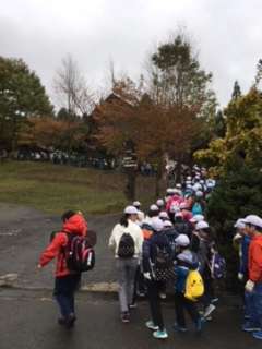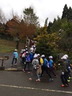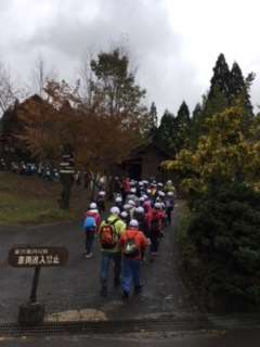 小雨が降っていますが,予定通り登山に出発しました。スタートは,みんな元気いっぱいです。