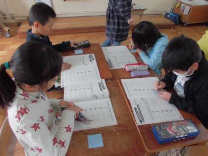 夏休みに行ったエコの活動の中で、自分たちができたことを青い付箋に、できなかったことを赤い付箋に書きだしました。