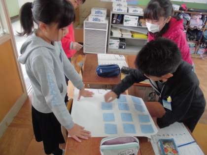 書いた付箋を、模造紙に貼り出します。一人一人、書いたことを読み上げながら貼りました。