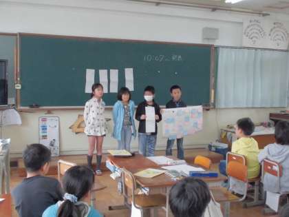 できた模造紙を見て、班ごとにチャレンジ目標をたてました。