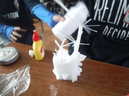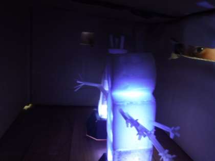 スポンジやストローを使って,様々な形に立体を作っていきます。そこにライトを当てると…,どんな光り方をするだろう?段ボールの箱の中で,光り方を確かめながら,作ってみました。