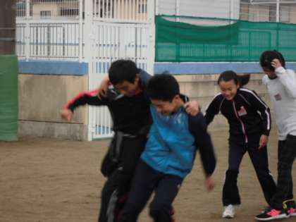 そして始まった二人三脚リレー。息ぴったりとかけ出すペア。思うように進まず,転んでしまうペア。あせればあせるほど,もがいてしまいます。それでも最後まで応援していた姿はすばらしかったです。