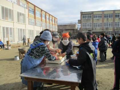 年末恒例の餅つき大会が,今年も少年補導や地域の方たちにお世話になって,盛大に行われました。