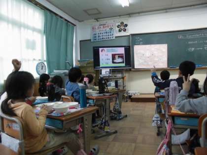 献立についてのビデオを見て,楽しくおいしい給食時間になりました。