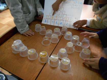 これまでにグループで「もっと楽しく遊ぶために」「1年生に喜んでもらうために」考えたり工夫したりしてきましたが.きょうは1年生が教室に来て,2年生が遊びを教えてあげました。みんな仲良く楽しく過ごせたようです。