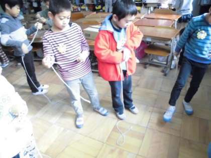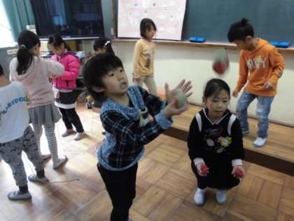 けん玉や,お手玉,コマなどむかしの遊びを楽しんでます。
