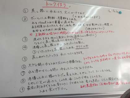 ホワイトボードに詳しく作り方を書いていただいていました。