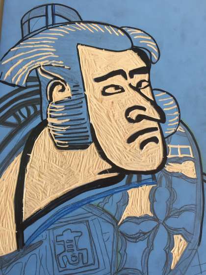 6年の図工「版から広がる世界」では,浮世絵の中から作品を選んで木版画に取り組んでいます。