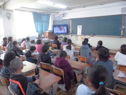 給食週間には、調理員さんが給食を作っておられるところを映像で見ました。