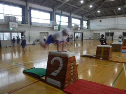 とび箱運動の学習を楽しくがんばっています。6年生になって体格も大きくなり,とべる高さも距離も伸びています。友達に教えてもらったり,パソコンでイメージをつかんだりして,新しい技にもチャレンジしています。
