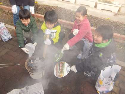 PTAの方と一緒にふれあい学習をしました。社会で「昔の道具」を調べているので、七輪を使ってお餅を焼きました。炭に火をつけるのが難しく、昔の人たちの生活の大変さを実感しました。焼いたお餅はとてもおいしく、みんな大喜びでした。保護者の皆さん、ありがとうございました。