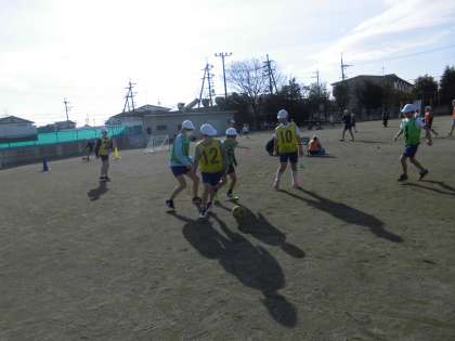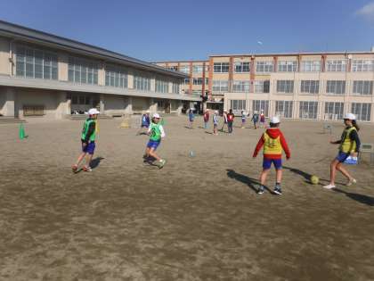 体育でサッカーの学習が始まりました。今日のめあての一つは,「自分のチームを知る」ということです。まだまだ動きが慣れていないこともありますが,みんなで楽しもうという気持ちが見えました。ボールを回す楽しさも感じられてよかったです。