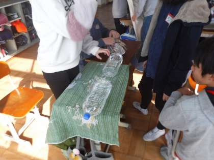 地域の方に来ていただき,ふろしきの使い方を教えていただきました。やってみると結び方に苦労する面もありましたが,様々な用途があることに驚き,ふろしきの良さに気づけたかなと思います。ハンカチやバンダナなど,お家にあるもので再チャレンジしてみてもいいですね。