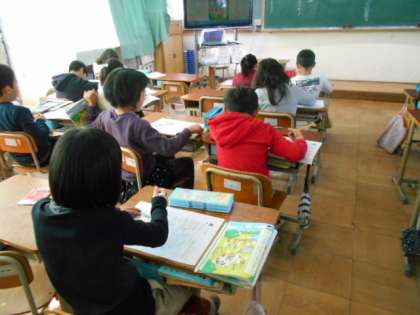 主語と述語のつながりに気をつけて,絵にかかれている様子を書いています。習った漢字は使ったり,主語と述語だけでなく修飾語(まだ学習していませんが…)も使えている人もいました。