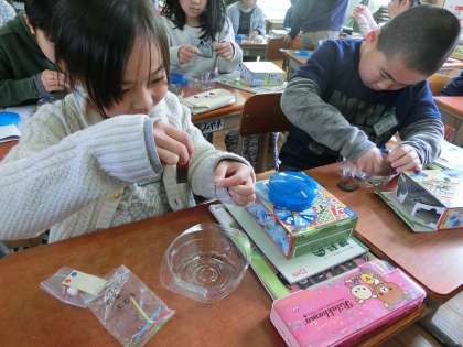 磁石につけた鉄はじしゃくになるかどうかを実験して確かめました。磁石になっているのを驚きと共に確かめられていました。