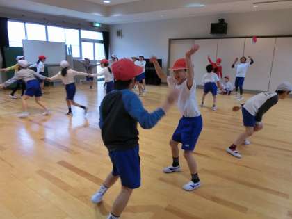 体育科の学習でリズムダンスをしています。ヒップホップ,サンバ,ロックのリズムで楽しく踊っています。最初は,踊り方が分からなかったり踊りに抵抗感がある子もいましたが,友達でいろいろな動きを見合ったり教え合ったりしてどんどん踊れるようになってきました。リズムに乗って踊ることを楽しみたいです。