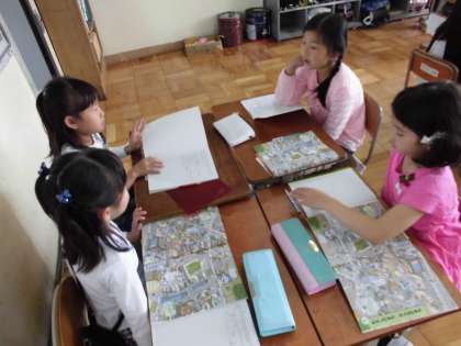 2年生の生活科で探検した場所を詳しくお話している人が多かったです。