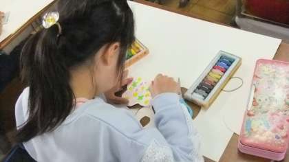 絵の具やコンテ,クレパス等を使って,自分の気持ちを形や色で表しました。どんな気持ちを表現したのか尋ねると,楽しい気持ち,寂しい気持ち,くやしい気持ち,やりきれない気持ちなどを表したと答えていました。中には,達成感,恋心を表現した子もいまた。描いていくうちに,今の自分の中にあるいろいろな気持ちが見えてきたそうです。