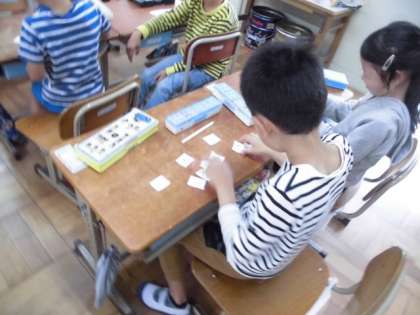 数字を素早く並べたり,タンブリンの音の数のカードをとったりしました。