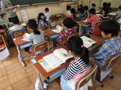 国語科の学習で,濁点のつく言葉を学習しています。「かき」にてんてんをつけると「かぎ」という全く違うものに変身するのが分かりました。他にもてんてんのつく言葉はあるかな〜と問いかけるとなんと「てんき」が「でんき」に変身することも見つけた人もいました!!また,いろいろ探していきたいです。
