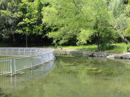 池には大きなサギがいました。