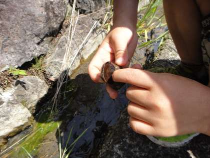 小さいタニシや大きいタニシを見つけていました。