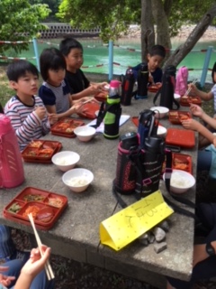 浜でいっぱい活動したので,おなかぺこぺこ!