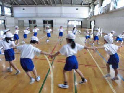 かけ声があったり,みんなで手を繋いだりとっても楽しくわくわくわいわい学習しました。また,いろんなダンスを一緒にしていきたいと思います。