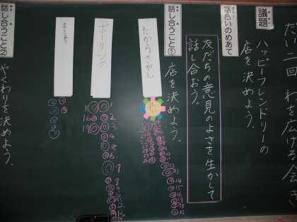 議題は,「6月に行われるハッピーフレンドリーの店を決めよう」です。