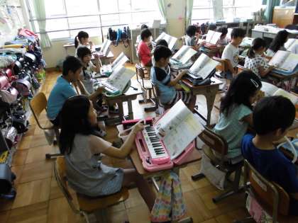 隣同士で聴き合ったり,アドバイスし合ったりして学習しています。