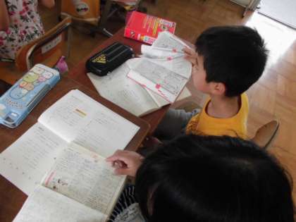 国語科で,辞書の引き方を学習しました。「あいうえお順に並んでいる」「ページの上の方に,どんな言葉が載っているか書いてある」といった気づきをもとに,様々な言葉を引き,辞書の引き方を学んでいきました。