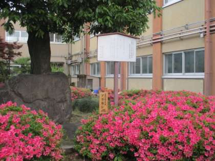 ツツジは校章のドングリを表しています。