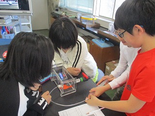 4組は地学的分野の「風」について学習しました。風の起こり方や,風の強弱の決まり方などを実験しながら学びました。